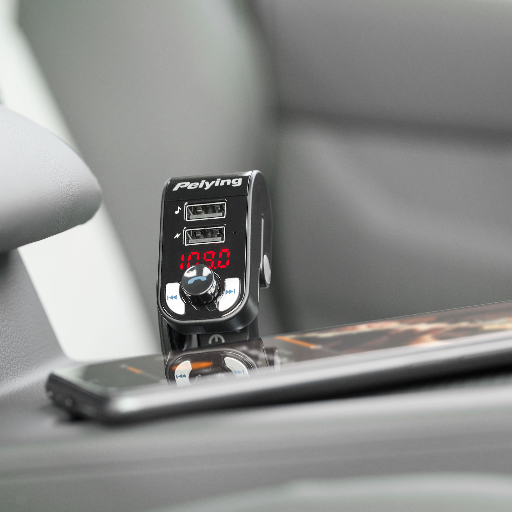 Transmiter FM samochodowy z USB PeiyingMasz starszy typ samochodu, który mocno ogranicza Cię z pod względem możliwości odtwarzania ulubionej muzyki? Transmiter FM Peiying URZ0466, to obowiązkowy gadżet, w który powinieneś wyposażyć swoje auto. To niewielkie urządzanie pozwoli Ci przesłać dźwięk ze smartfona do radia samochodowego.
