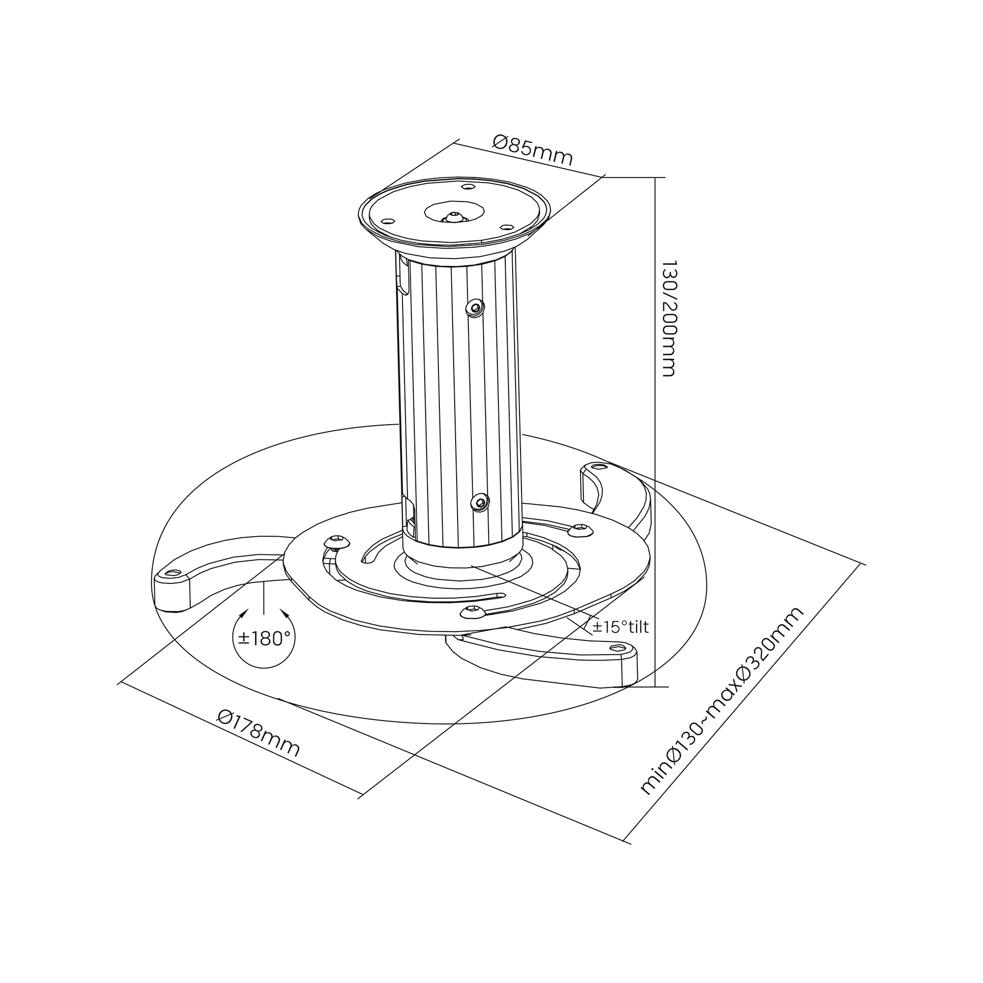 Uchwyt do projektoraSzukasz uchwytu sufitowego, który umożliwi idealne wyświetlanie obrazu z Twojego projektora? Uchwyt Cabletech łączy wyjątkową elastyczność z solidnością, zapewniając doskonałą jakość obrazu w każdej sytuacji. Dzięki regulacji w pionie w zakresie od +15° do -15° oraz pełnemu obrotowi 360°, precyzyjnie dopasujesz położenie projektora do swoich potrzeb, co jest szczególnie przydatne podczas prezentacji czy pracy zespołowej.