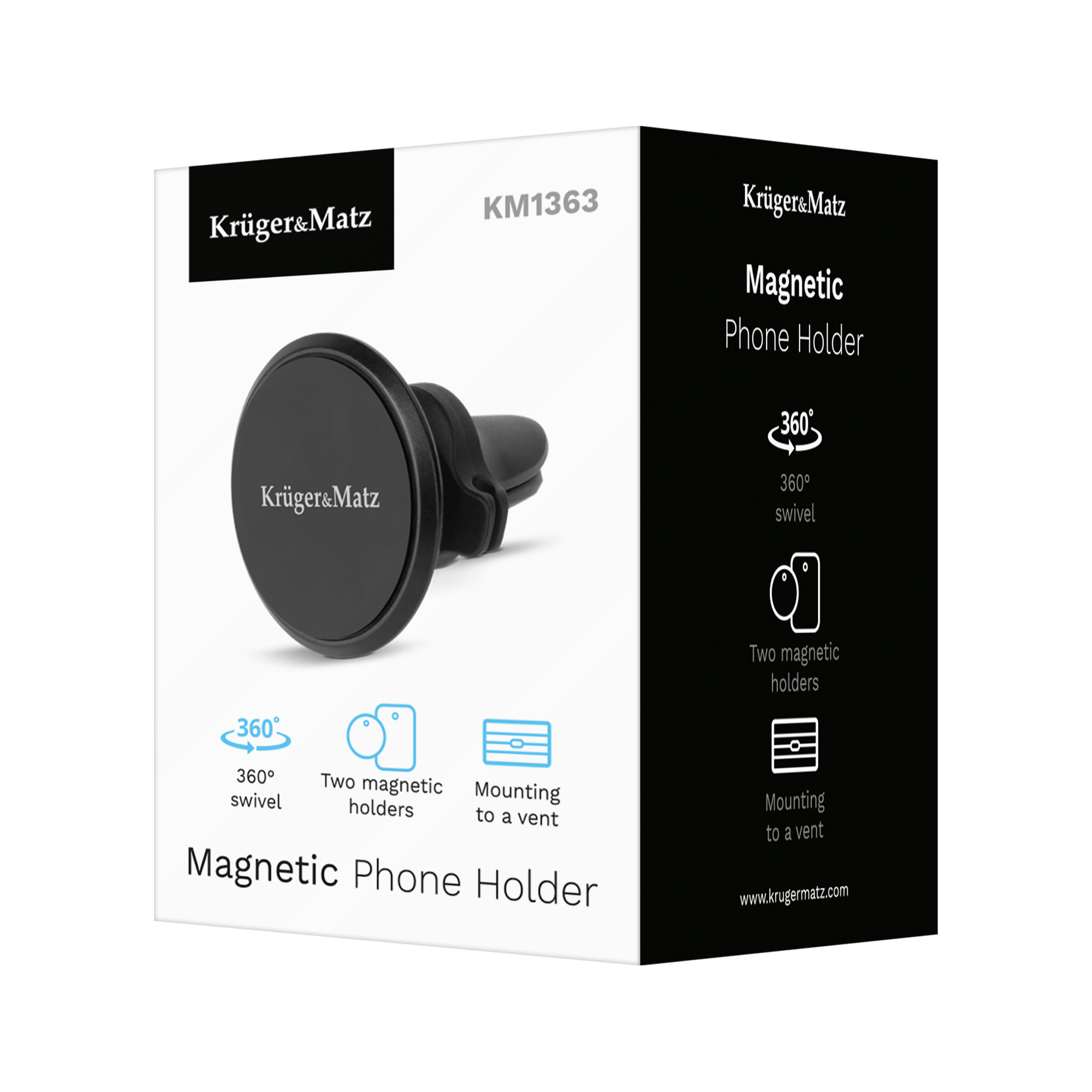 KomfortUniwersalny uchwyt magnetyczny na telefon do samochodu Kruger&Matz posiada możliwość obrotu uchwytu o 360°. Dzięki temu możesz wygodnie dostosować ułożenie telefonu do Twoich potrzeb.