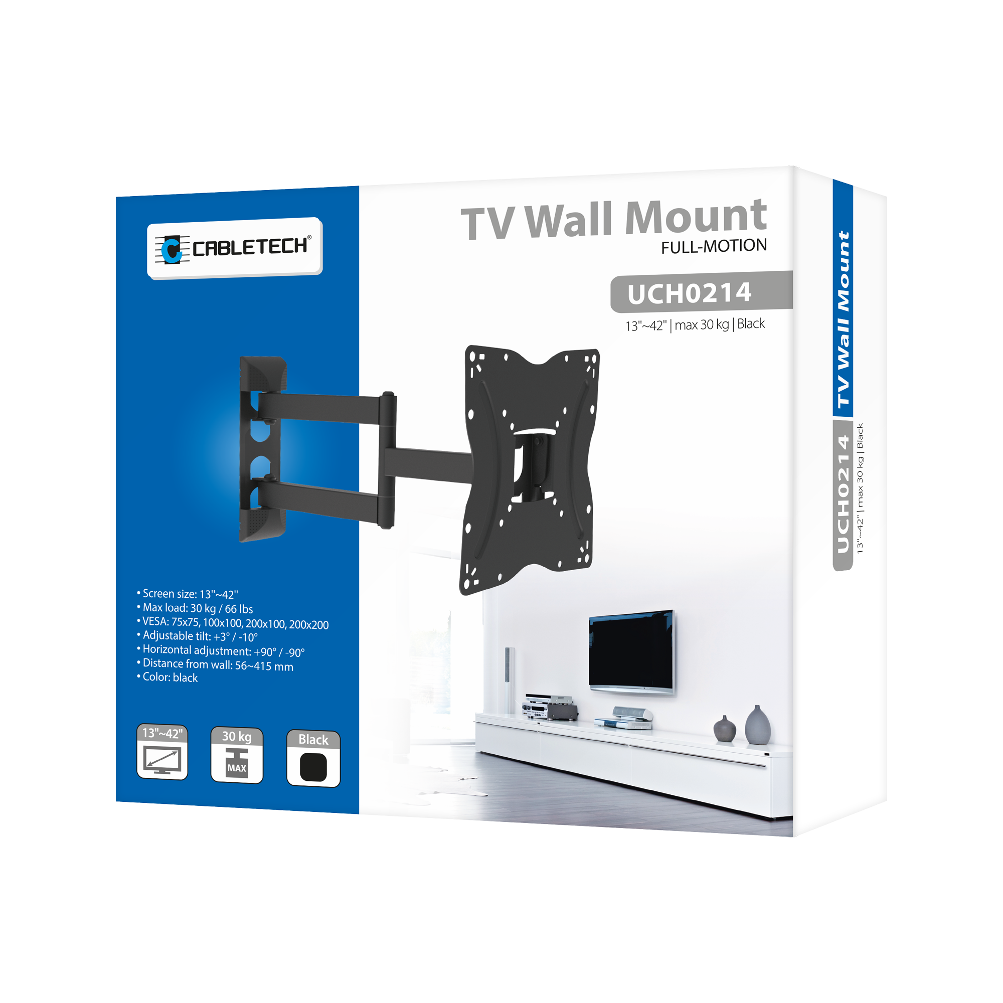 Uchwyt do telewizoraSzukasz sposobu na zamocowanie telewizora na ścianie?Ruchomy uchwyt naścienny do telewizorów LCD obsługuje ekrany od 13 do 42 cali i oferuje maksymalne obciążenie do 30 kg, zapewniając wszechstronność i stabilność. Dzięki regulacji w pionie od -20° do +20° oraz w poziomie od +90° do -90°, możesz łatwo dostosować kąt widzenia do swoich potrzeb. Uchwyt zapewnia elastyczność montażu, umożliwiając ustawienie telewizora w odległości od 88 do 398 mm od ściany, a zarządzanie kablami gwarantuje schludny wygląd.