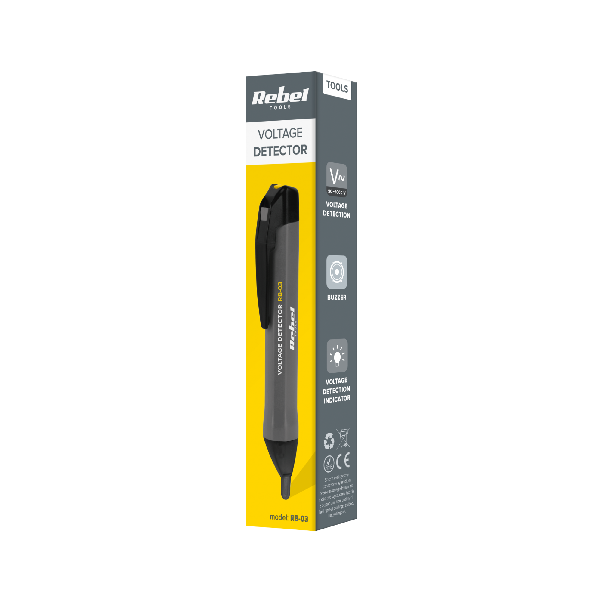 Wskaźnik napięcia REBEL RB-03Wskaźnik napięcia REBEL RB-03 to poręczne i niezawodne narzędzie, które umożliwia szybkie i bezpieczne wykrywanie napięcia w instalacjach elektrycznych. Dzięki kompaktowym rozmiarom i łatwości obsługi jest idealnym wyborem zarówno dla profesjonalistów, jak i amatorów zajmujących się pracami elektroinstalacyjnymi.