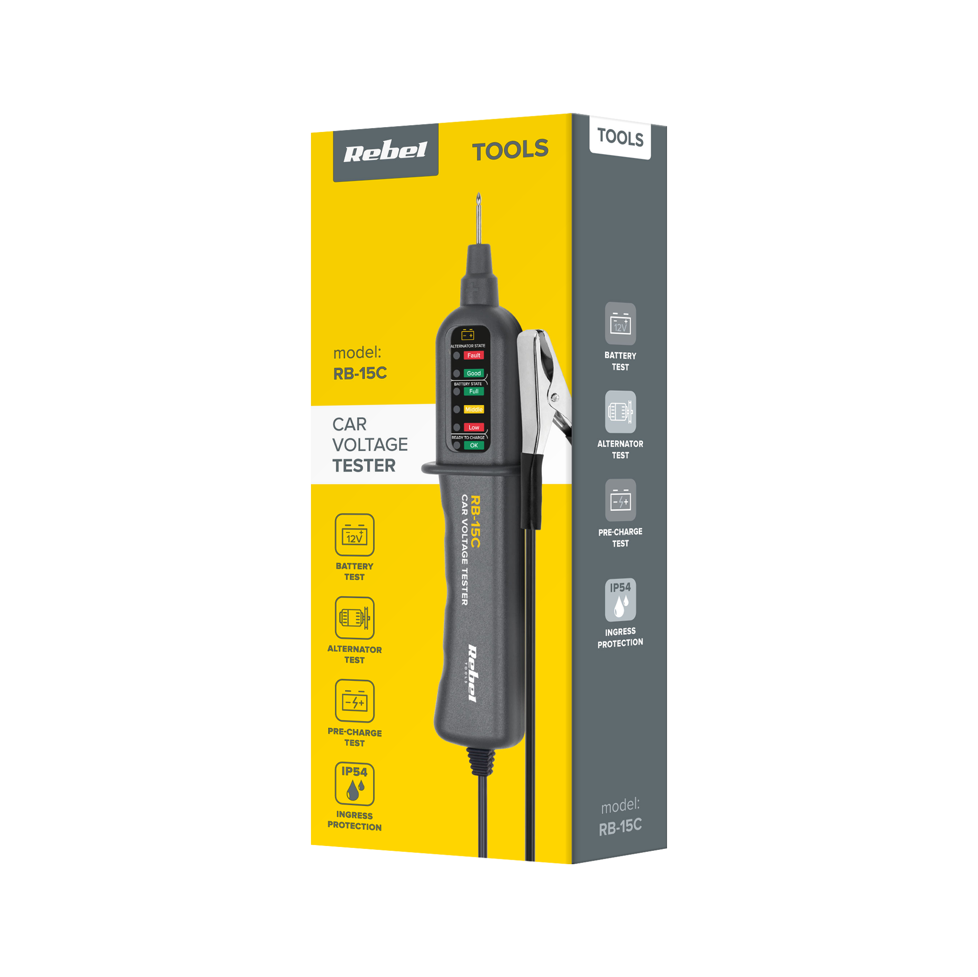 Wskaźnik napięcia REBEL RB-15CWskaźnik napięcia REBEL RB-15C to praktyczne narzędzie diagnostyczne, idealne do sprawdzania stanu alternatorów i akumulatorów w pojazdach z systemami 12 V. Kompaktowy i lekki, wskaźnik zapewnia precyzyjne odczyty i jest łatwy w użyciu, co sprawia go niezastąpionym w warsztatach oraz dla użytkowników indywidualnych, dbających o prawidłowe działanie układu elektrycznego swojego pojazdu.