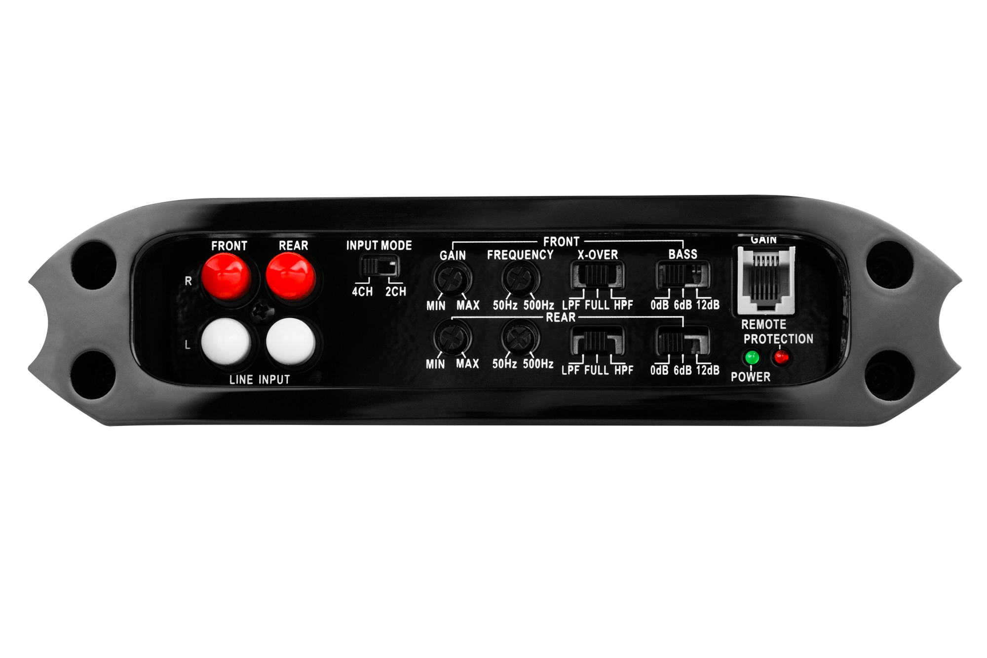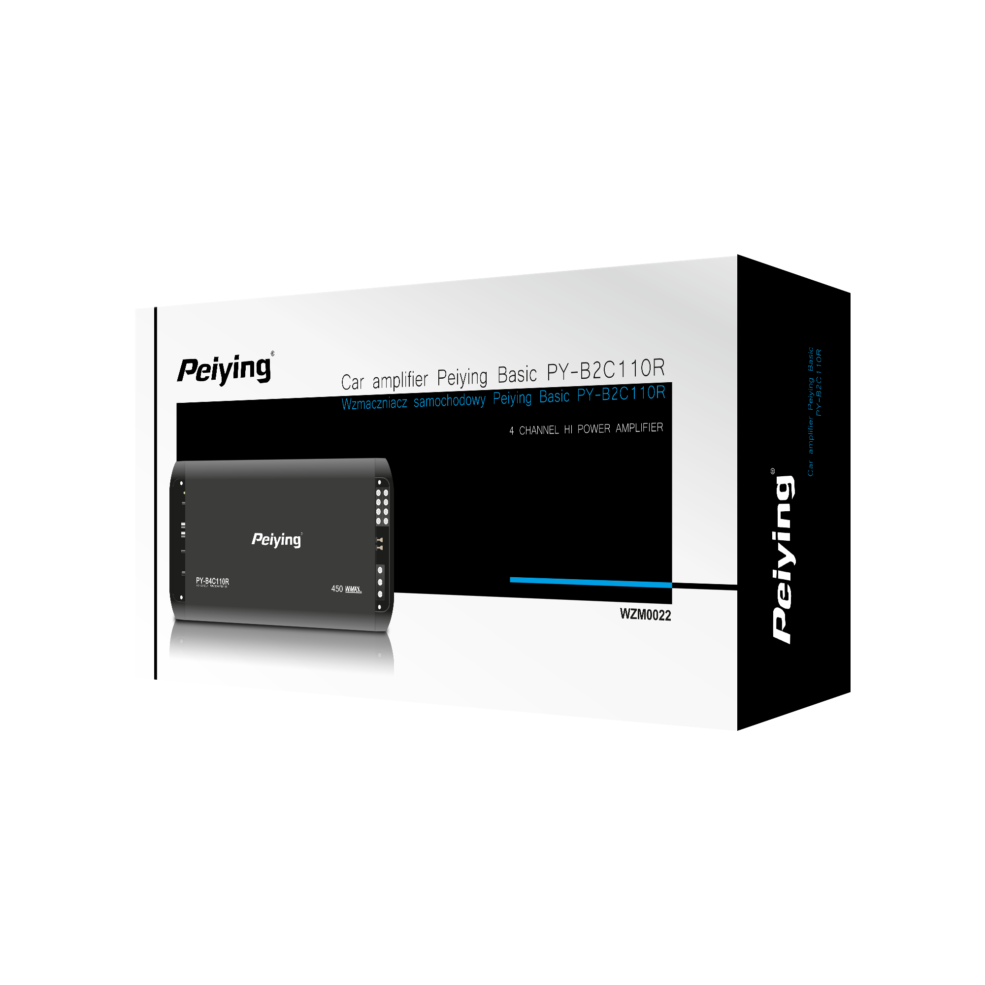 Wzmacniacz samochodowy Peiying Basic PY-B4C110R 4 kanałyWzmacniacze Peiyinga wzorniczo i technicznie są doskonale dopasowane do radioodbiorników i subwooferów Peiyinga. Posiadają zabezpieczenia przeciążeniowe i termiczne, mają solidne terminale połączeniowe, dużą moc wyjściową i spory zakres regulacji basu. Wybrane modele wzmacniaczy posiadają wyjście liniowe oraz funkcję korekcji tonów niskich i wysokich.
