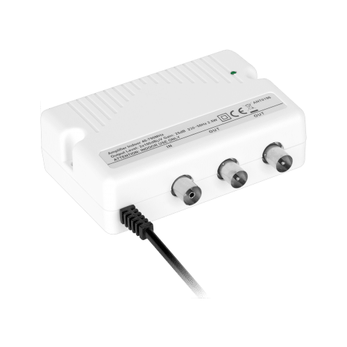 Średni zysk energetyczny: 28-46 dB (w zależności od zastosowanego wzmacniacza) Widoczność kątowa pozioma: 40° Widoczność kątowa pionowa 30° Impedancja wyjścia 75 Ohm Kolor: Czarny Wymiary: 375 x 220 x 80 mm Waga: 0,9 kg Kompatybilna z systemem DVB-T2 ---------- Standardowe wyposażenie anteny: wzmacniacz niskoszumowy, zasilacz (tylko w modelach ze wzmacniaczem), LED kontroli zasilania (tylko w niektórych modelach ze wzmacniaczem). Pobierz instrukcję obsługi Kod EAN: 5901890024822 | ||||||||||||||||||||||||