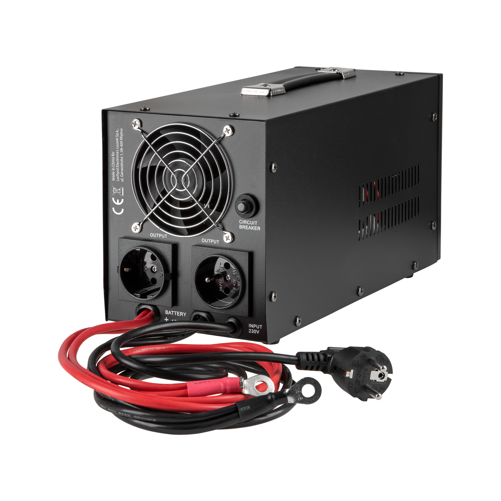 Trzy tryby pracyTryb awaryjnego zasilacza z funkcją ładowania, przetwarza napięcie stałe 12V DC podawane z akumulatora zewnętrznego na napięcie zmienne 230V AC oraz doładowuje akumulator zewnętrzny. Tryb prostownika doładowuje akumulator zewnętrzny. Tryb przetwornicy, przetwarza napięcie stałe 12V DC z akumulatora na napięcie zmienne 230V AC.