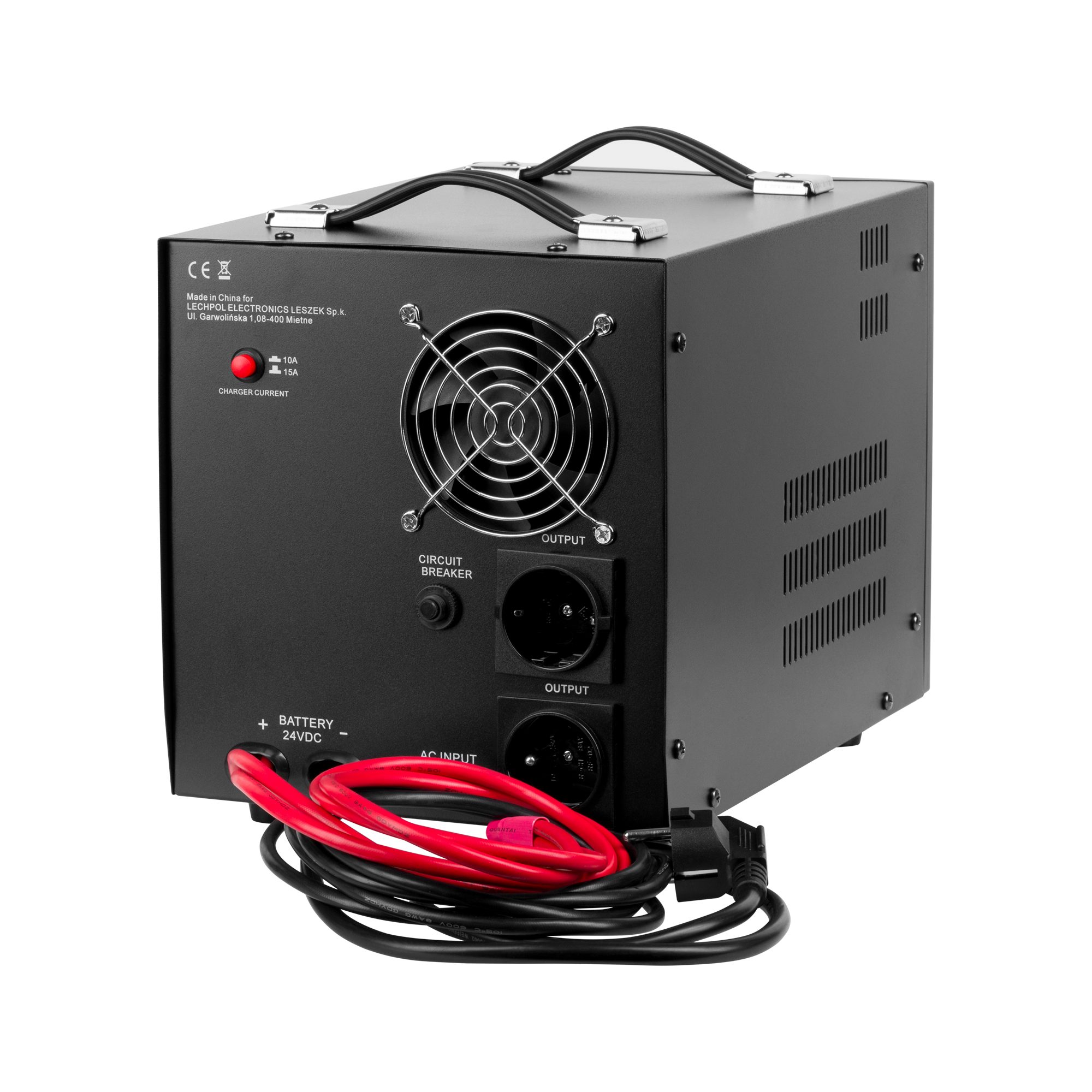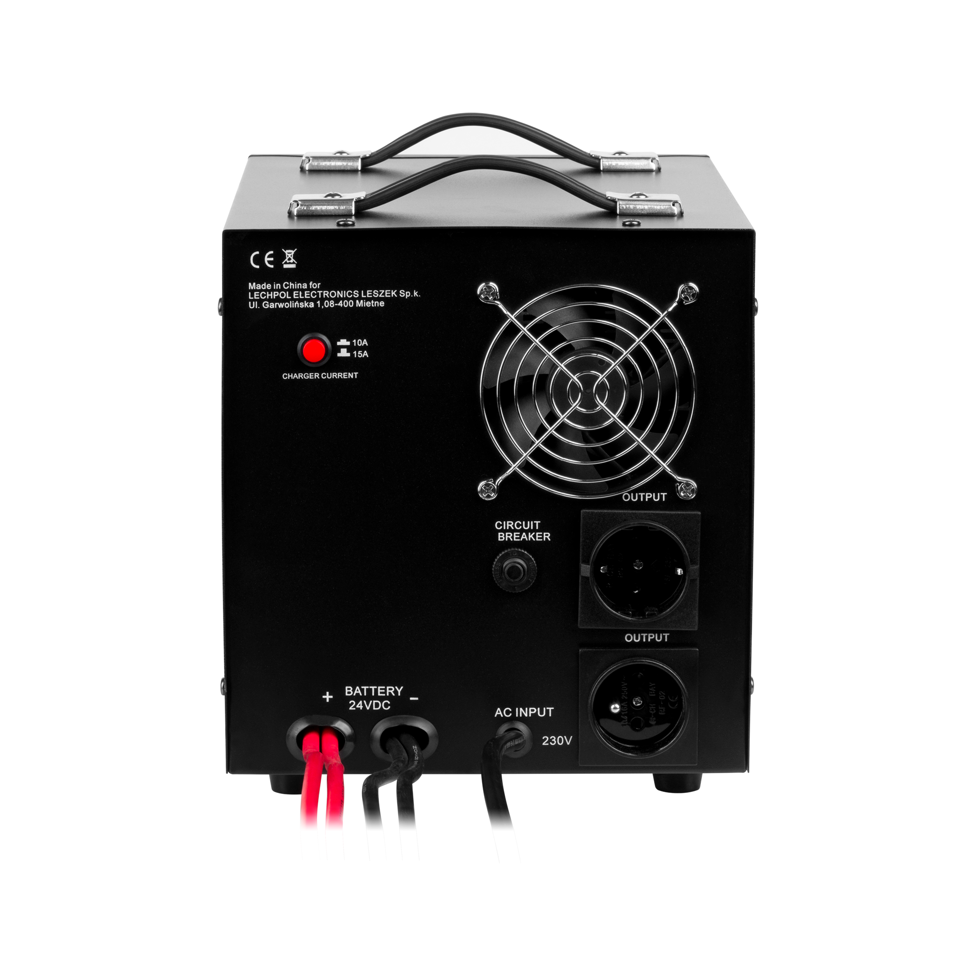 Trzy tryby pracyTryb awaryjnego zasilacza z funkcją ładowania, przetwarza napięcie stałe 24V DC podawane z akumulatora zewnętrznego na napięcie zmienne 230V AC oraz doładowuje akumulator zewnętrzny. Tryb prostownika doładowuje akumulator zewnętrzny. Tryb przetwornicy, przetwarza napięcie stałe 24V DC z akumulatora na napięcie zmienne 230V AC.