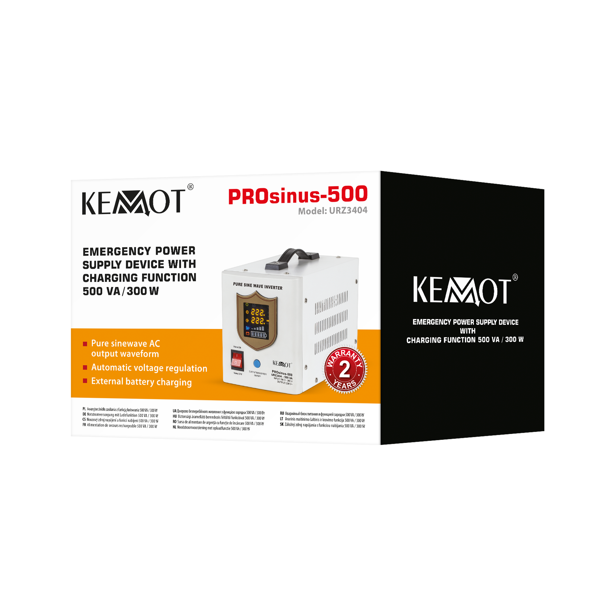 Zasilacz awaryjny KEMOT PROsinus-500 przetwornica z czystym przebiegiem sinusoidalnym i funkcją ładowania 12V 230V 500VA/300W URZ3404