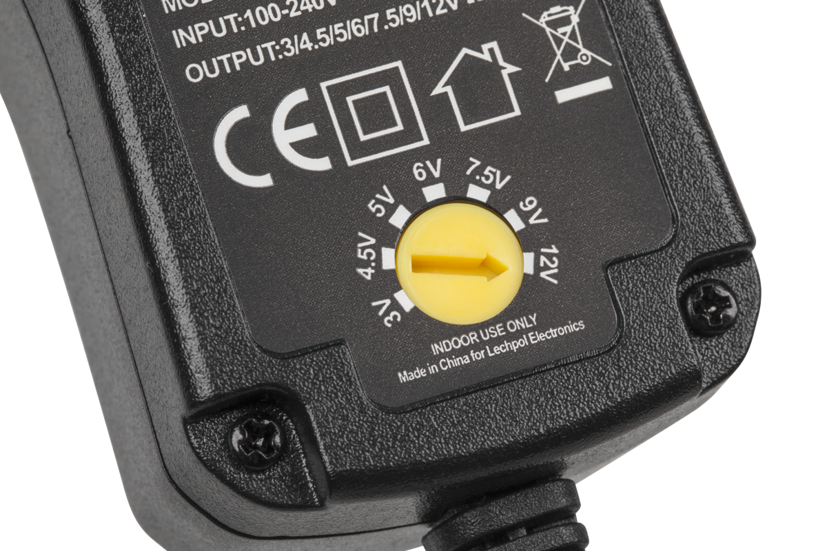 Napięcie wyjściowe: 3 V, 4,5 V, 5 V, 6 V, 7,5 V, 9 V, 12 V DC
