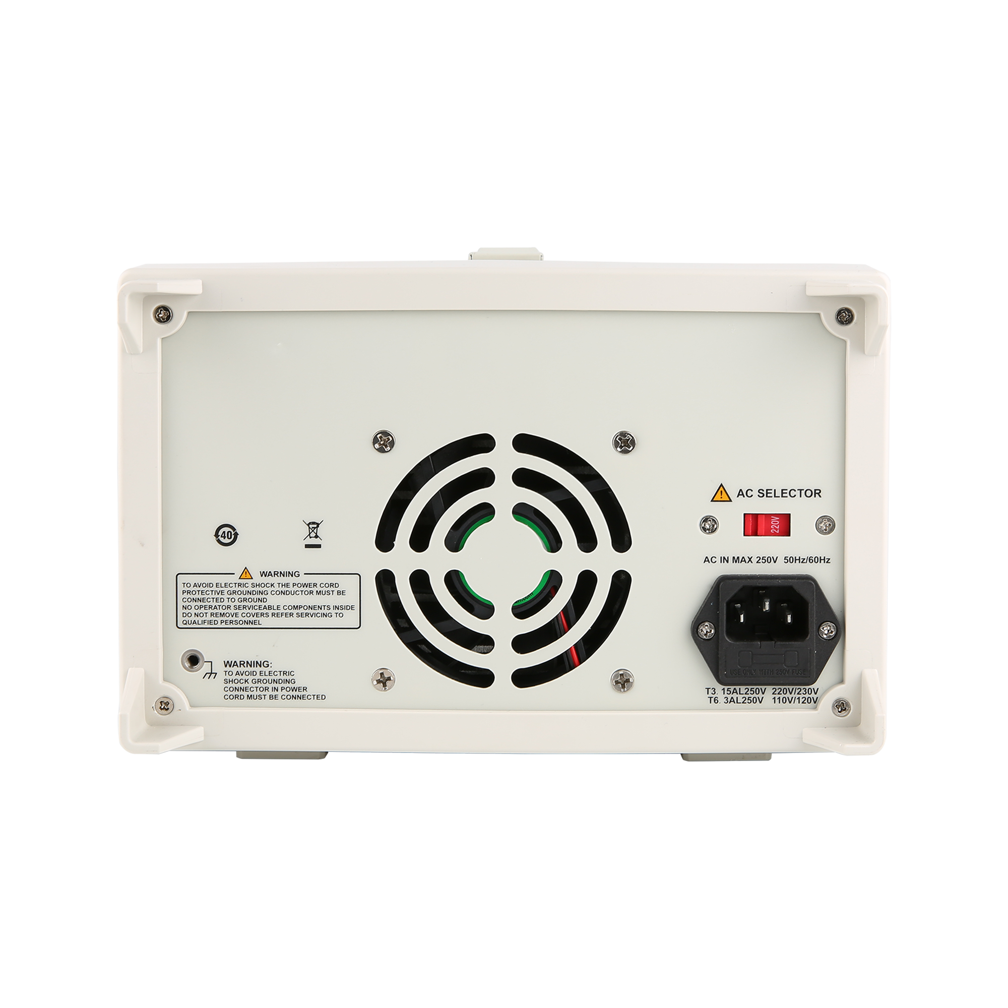 Ergonomia i łatwość obsługiWyposażony w poczwórny wyświetlacz LED, UTP3305-II umożliwia jednoczesne monitorowanie parametrów wszystkich kanałów, co znacząco ułatwia pracę. Kompaktowe wymiary (319 x 146 x 226 mm) i solidna konstrukcja o wadze 9,2 kg zapewniają stabilność oraz trwałość urządzenia. Szeroki zakres napięcia zasilania (AC 100 V/120 V/220 V/230 V) sprawia, że zasilacz jest uniwersalnym rozwiązaniem do zastosowań na całym świecie.