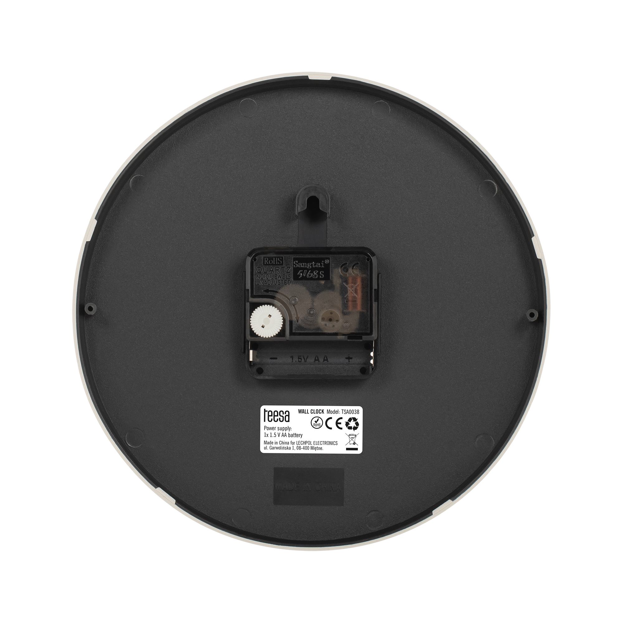 Duże przejrzyste cyfryZegar naścienny Teesa, wyposażony został w analogowy system wyświetlania czasu. Co ważne, tarcza urządzenia posiada czytelne oznaczenia godzinowe oraz precyzyjną skalę minutową. Duże i przejrzyste cyfry ułatwiają odczytywanie czasu nawet z większej odległości.