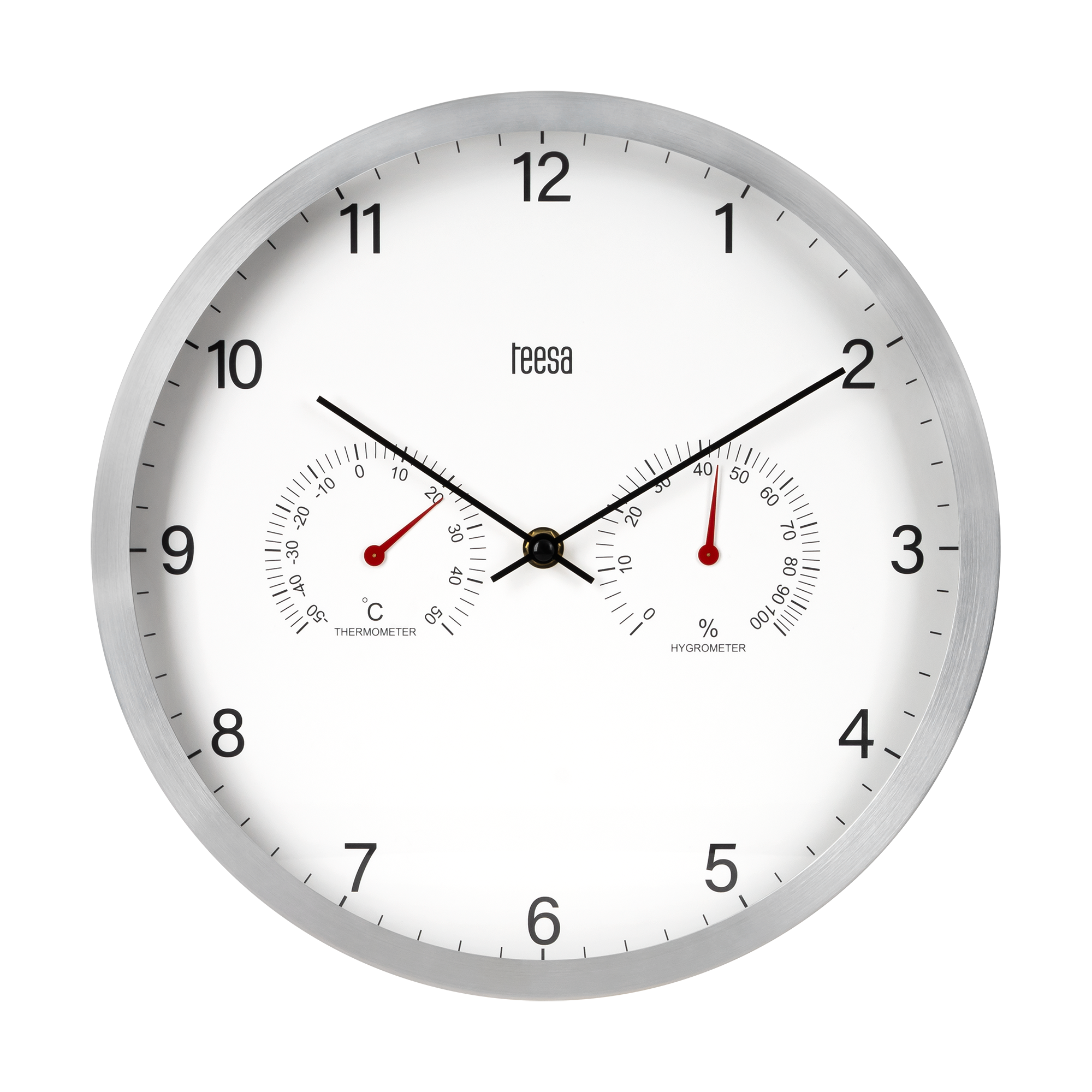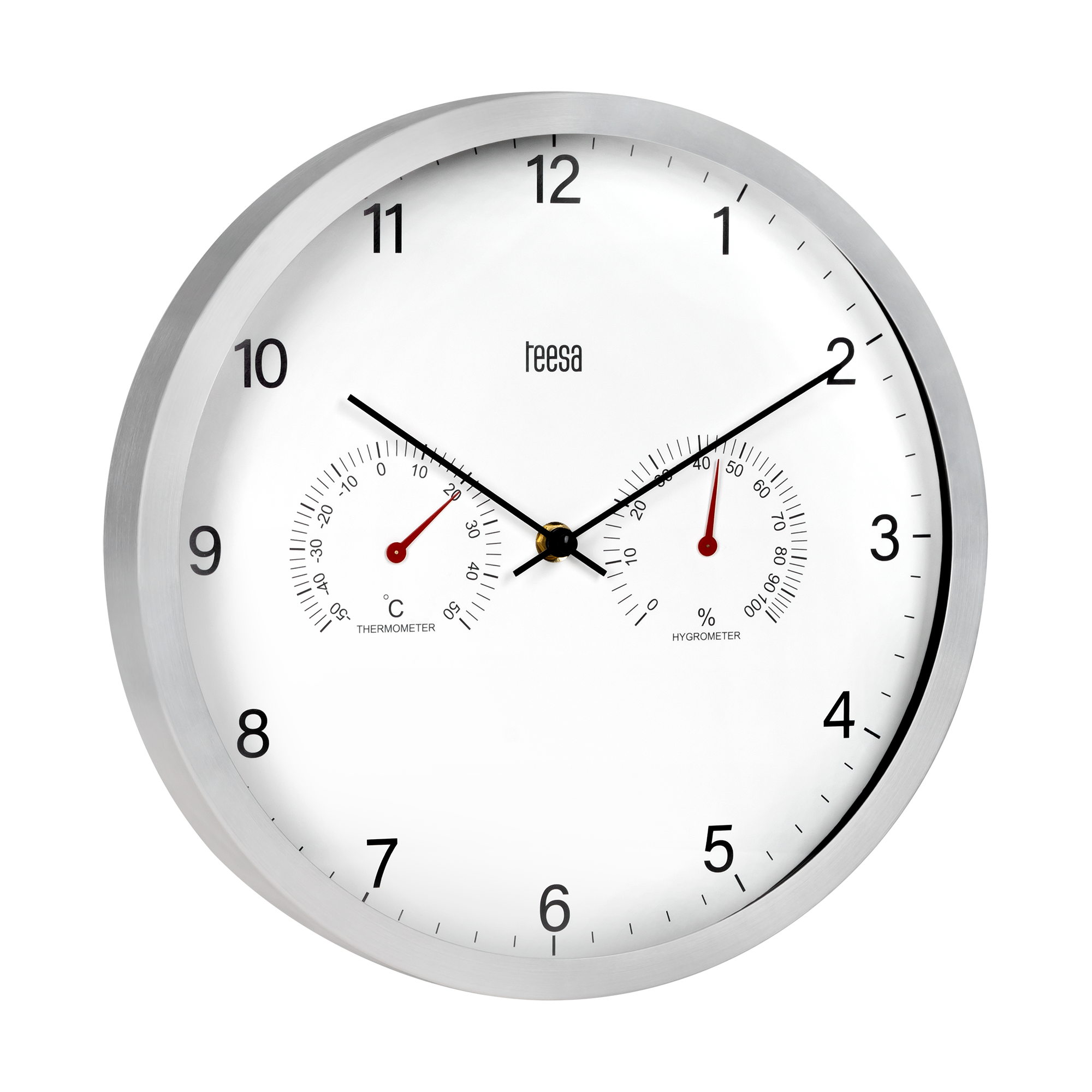 Zegar ścienny 30 cm z termometrem i hydrometremElegancki i funkcjonalny zegar ścienny Teesa to idealne rozwiązanie do każdego wnętrza – domu, biura, warsztatu czy poczekalni. Dzięki swojej funkcjonalności zegar umożliwia nie tylko precyzyjne odmierzanie czasu, ale także monitorowanie warunków otoczenia. To praktyczny dodatek dla osób ceniących wygodę i kontrolę nad mikroklimatem w pomieszczeniu.