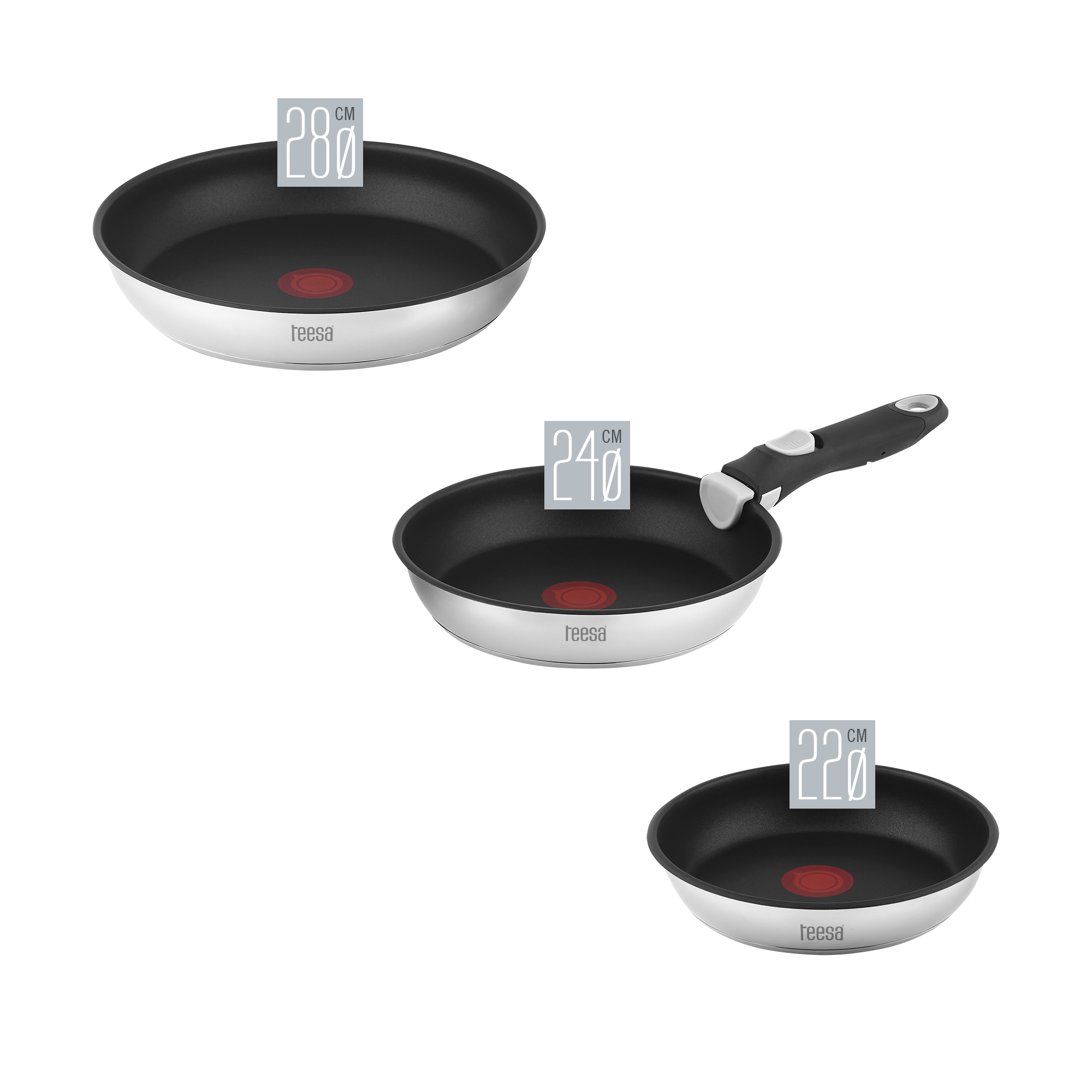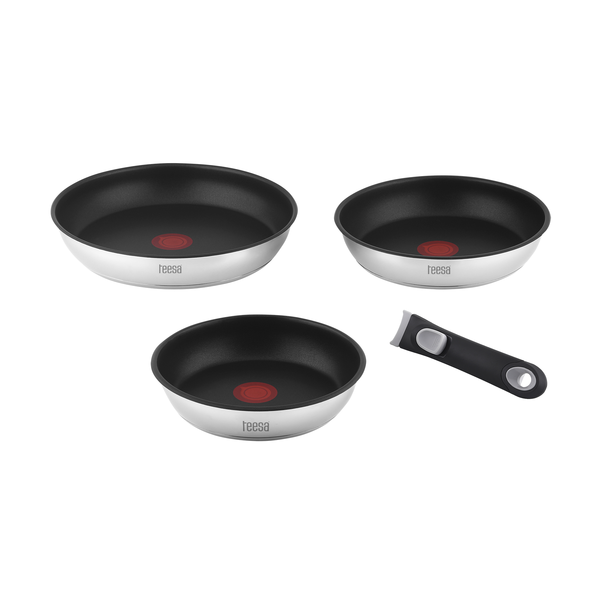 Zestaw 3 patelni TeesaZestaw 3 patelni Teesa to idealne rozwiązanie dla każdego, kto ceni sobie różnorodność i komfort podczas gotowania. Dzięki różnym rozmiarom patelni możesz przygotować zarówno małe przekąski, jak i większe dania dla całej rodziny. Wszechstronność i praktyczność w jednym komplecie!