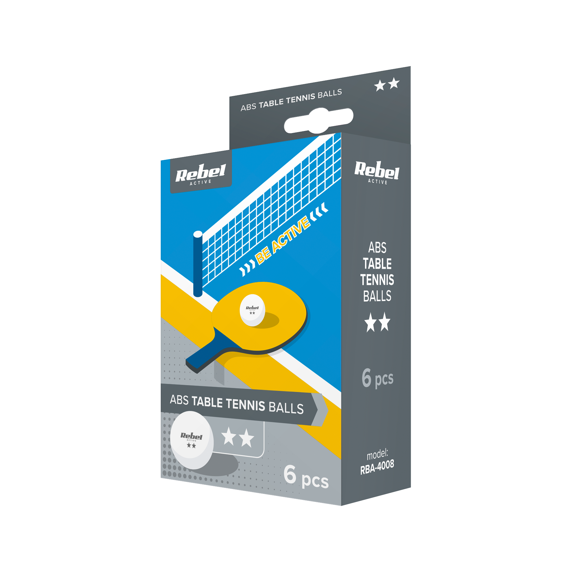 Zestaw piłeczek do tenisa stołowego Rebel Active RBA-4008Chcesz rozwijać swoje umiejętności w tenisie stołowym? Zestaw 6 piłeczek do ping-ponga z serii Rebel Active ułatwi Ci ćwiczenia bez zbędnych przerw na szukanie zagubionych piłek.