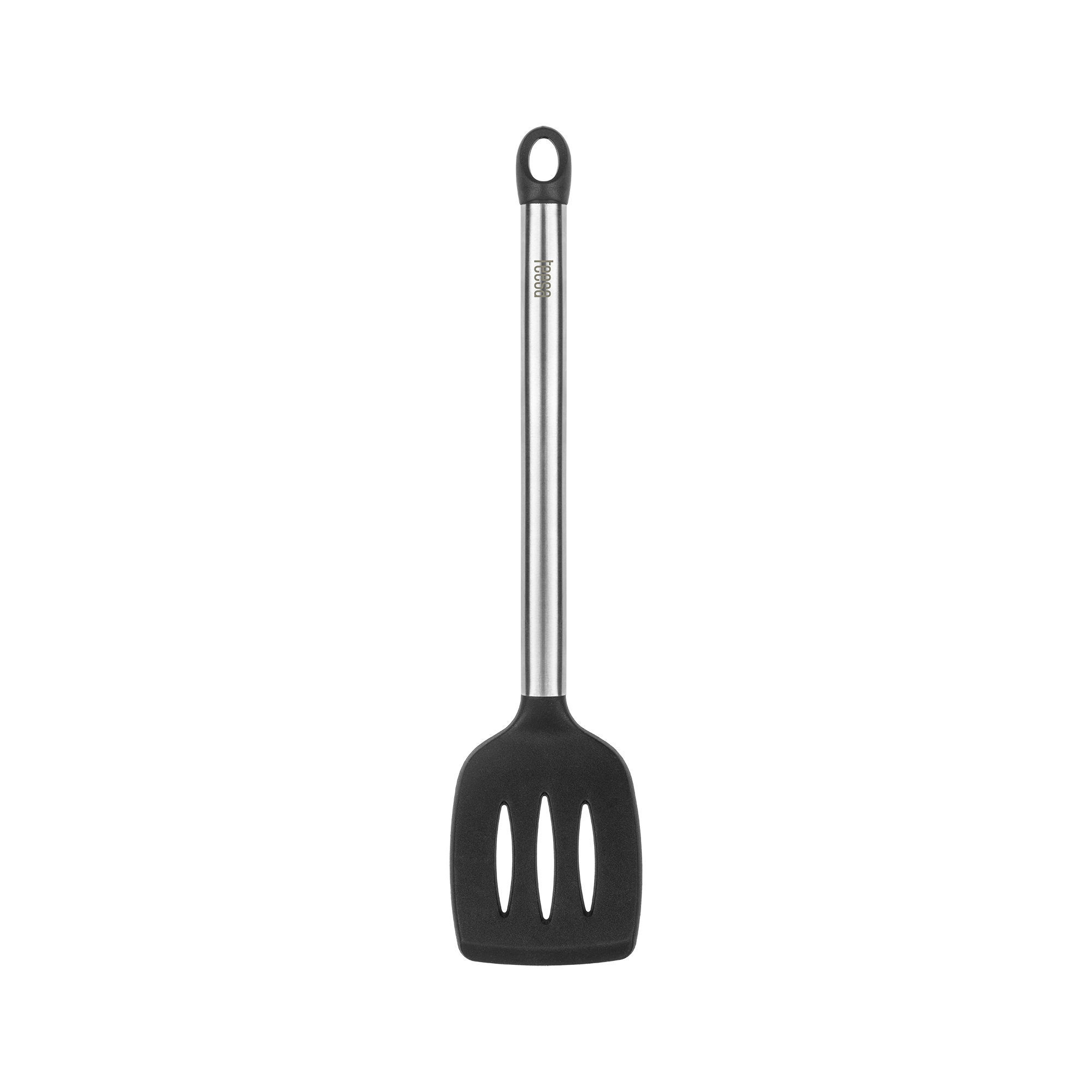 Odporne na ciepło i bezpieczne dla garnków!Przybory kuchenne Teesa zostały wykonane z wysokiej jakości nietoksycznego oraz przeznaczonego do kontaktu z żywnością silikonu. Odporny na ciepło materiał sprawia, że potrawy nie przywierają do powierzchni akcesoriów, co zdecydowanie podnosi komfort w czasie ich używania. Zastosowanie silikonu ma jeszcze jedną zaletę - chroni Twoje garnki przed zarysowaniami. Całość dopełnia wykonana ze stali nierdzewnej wygodna rączka, z funkcjonalnym zaczepem umożliwiającym powieszenie na wieszaku kuchennym.