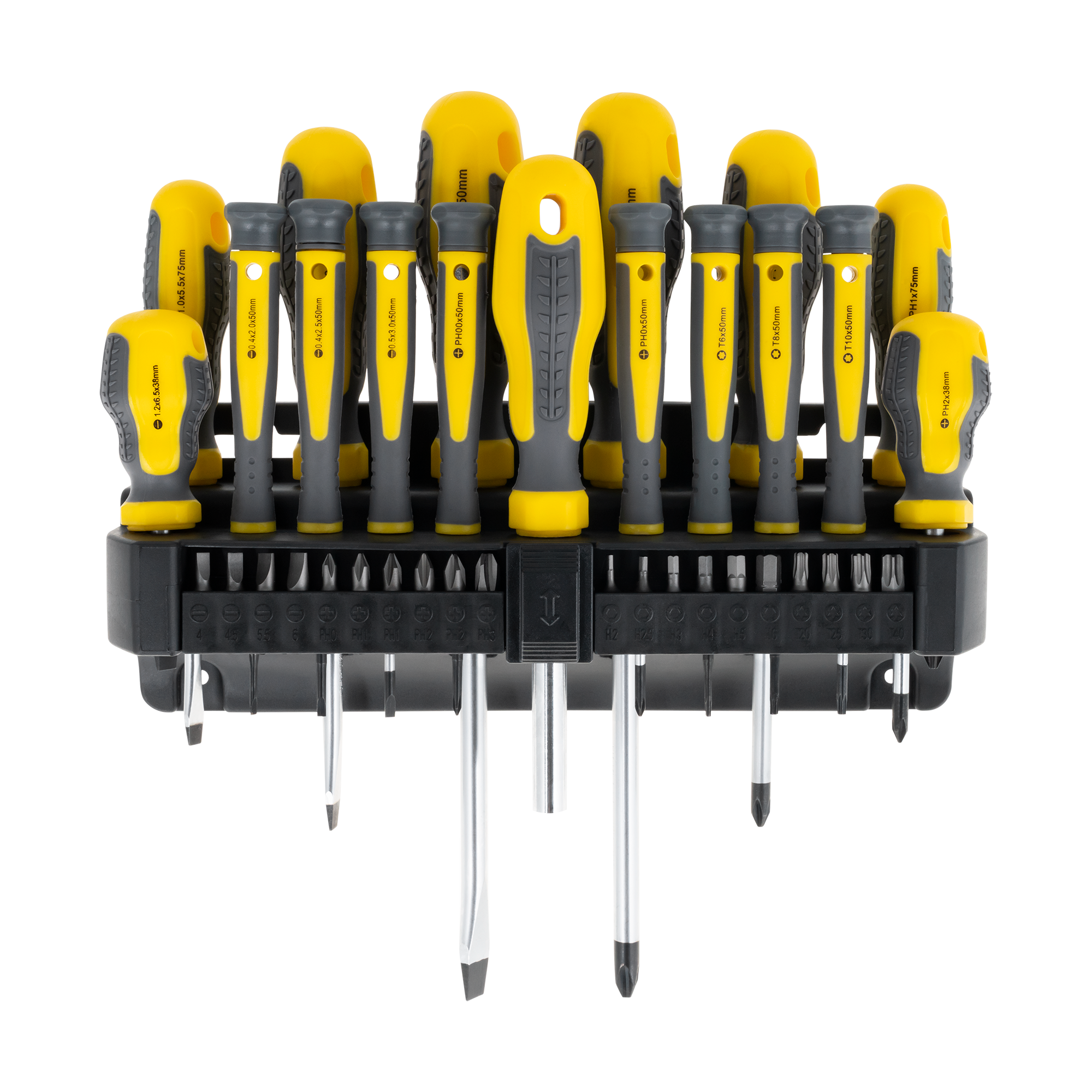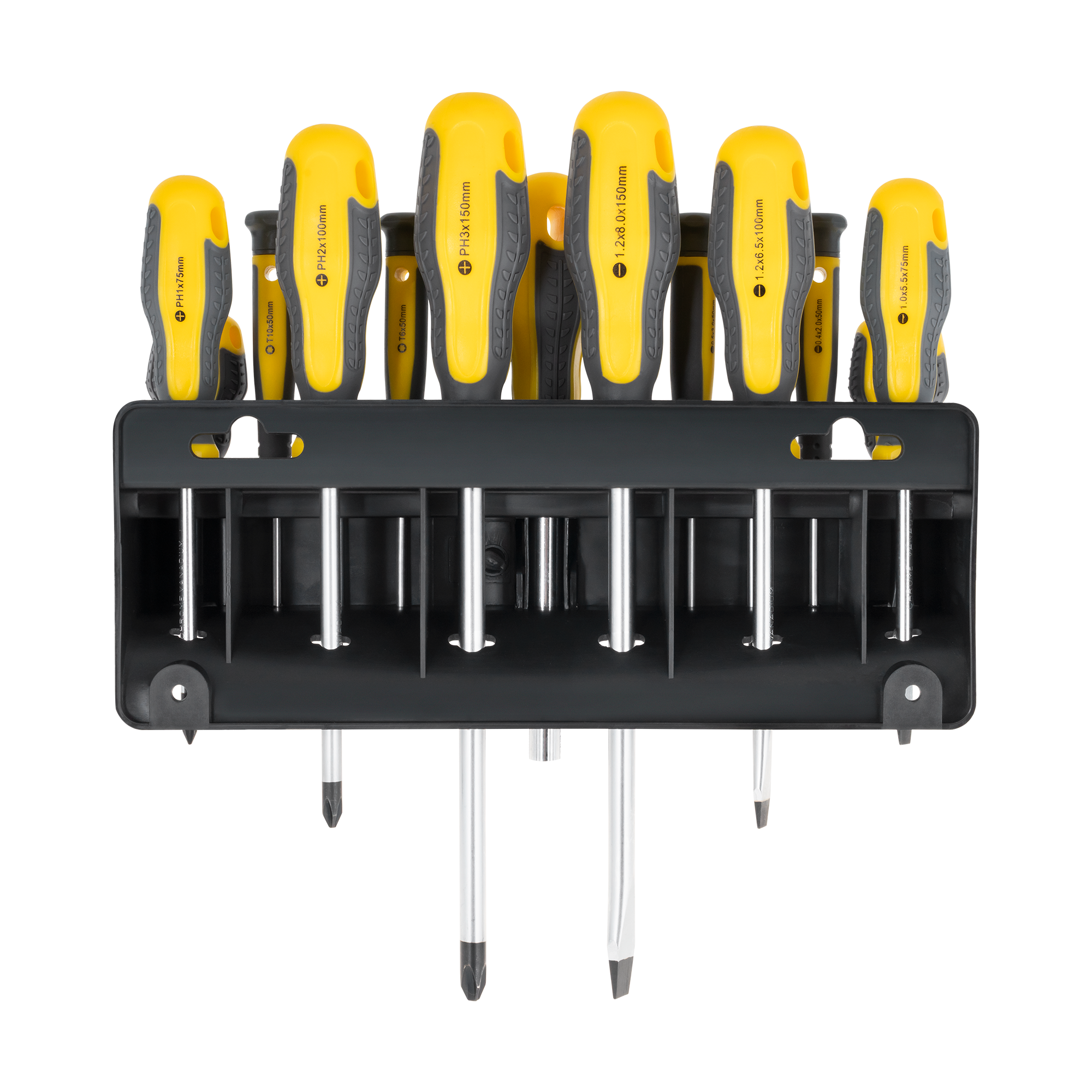 Komfort i wygodaKażdy śrubokręt posiada ergonomiczną rękojeść, zapewniającą wygodę i pewność chwytu, nawet podczas długotrwałej pracy. Wykonane ze stali chromowo-wanadowej, narzędzia są odporne na zużycie i gwarantują długotrwałą trwałość. Wybierz nasz zestaw, aby mieć pewność, że jesteś wyposażony w najwyższej jakości narzędzia do każdej pracy, zapewniając sobie efektywność i komfort.