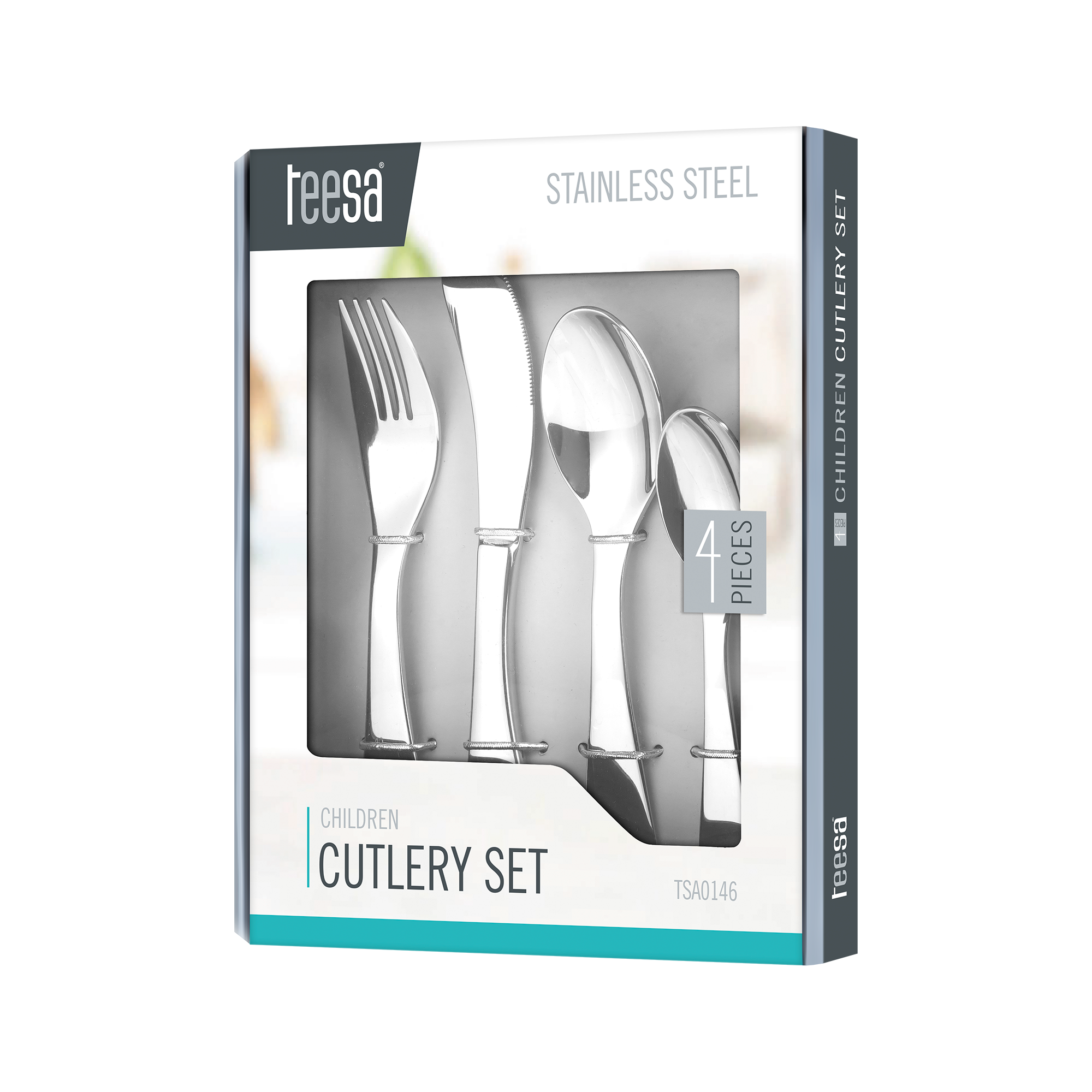Sztućce stołowe dla dzieci TeesaChcesz, by Twoje dziecko poczuło się wyjątkowo? Pozwól mu na samodzielny posiłek własnym kompletem sztućców. Sztućce dla dzieci Teesa, to zestaw idealny do rozpoczęcia nauki samodzielnego jedzenia. W jego skład wchodzi idealnie wypolerowany nóż, widelec i łyżka obiadowa oraz łyżeczka do herbaty.