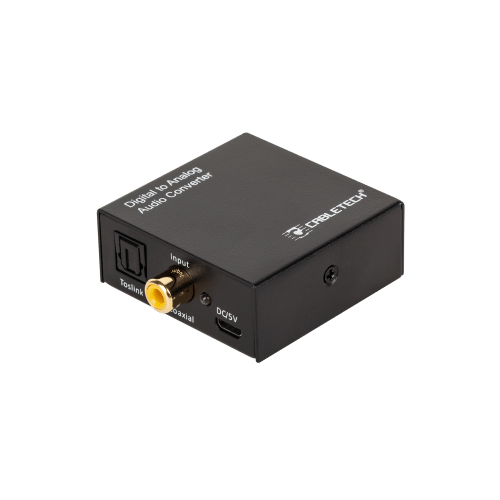 Konwerter CabletechKonwerter sygnału cyfrowego na analogowy Cabletech umożliwia łatwą konwersję sygnału z Toslink lub RCA (Coaxial) na analogowy sygnał audio (2x RCA lub jack 3,5 mm), zapewniając kompatybilność z różnymi urządzeniami audio.